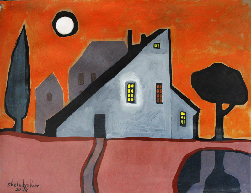 Stretched on wooden frame. Ready to hang. World-wide shipping after prepayment.