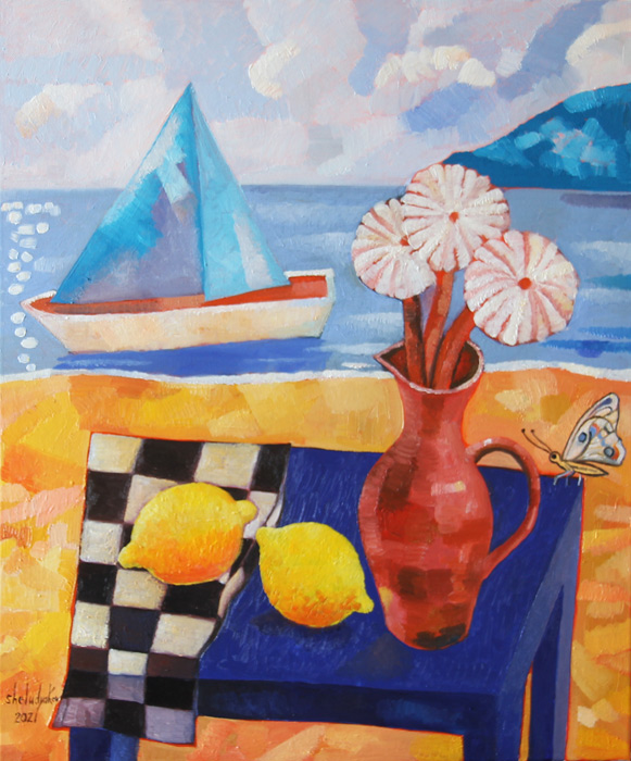 "Still-life with a Butterfly in a seascape"