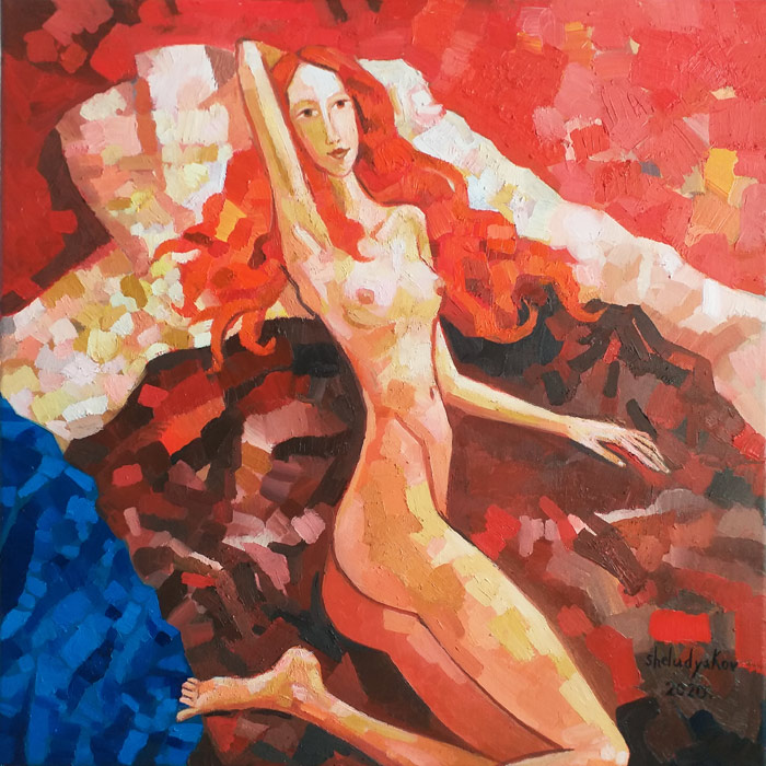 Stretched on wooden frame. Ready to hang. World-wide shipping after prepayment.