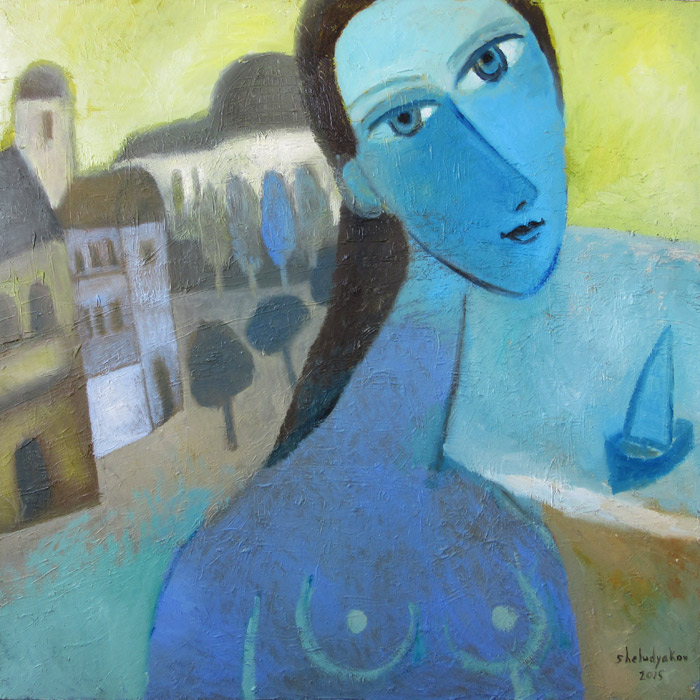 Stretched on wooden frame. Ready to hang. World-wide shipping after prepayment.