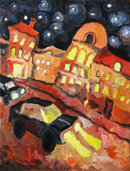 Stretched on wooden frame. Ready to hang. World-wide shipping after prepayment.