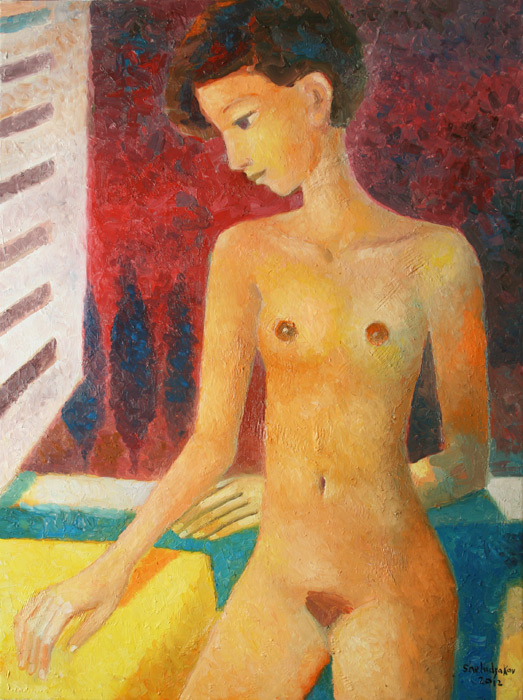 Stretched on wooden frame. Ready to hang. World-wide shipping after prepayment.
