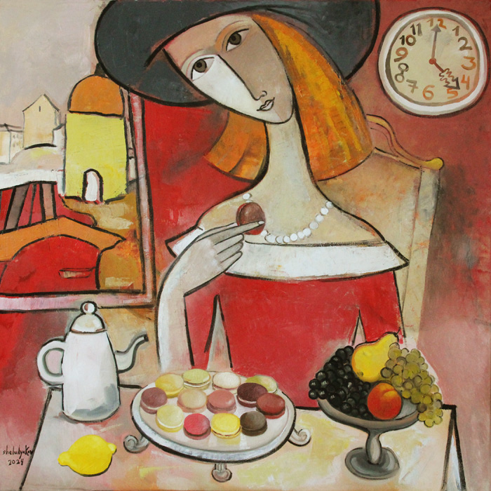 Stretched on wooden frame. Ready to hang. World-wide shipping after prepayment.