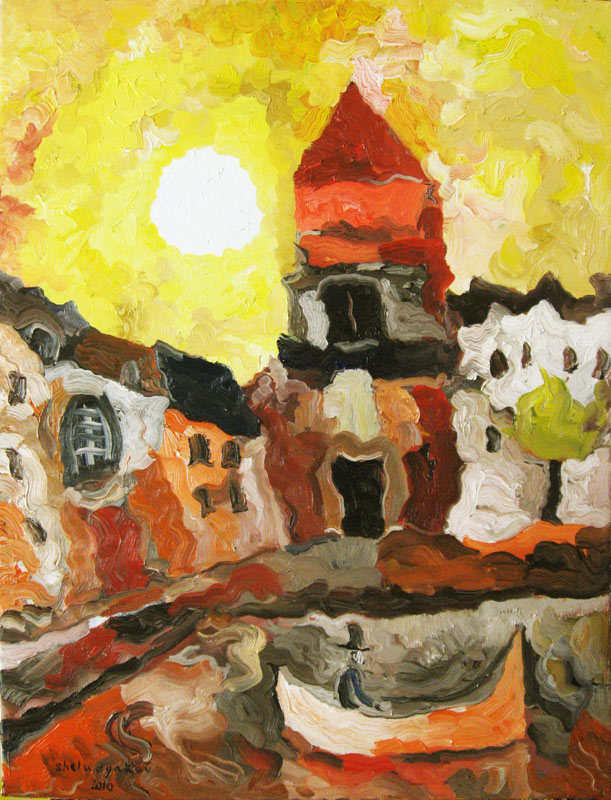 Stretched on wooden frame. Ready to hang. World-wide shipping after prepayment.