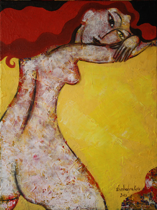 Stretched on wooden frame. Ready to hang. World-wide shipping after prepayment.
