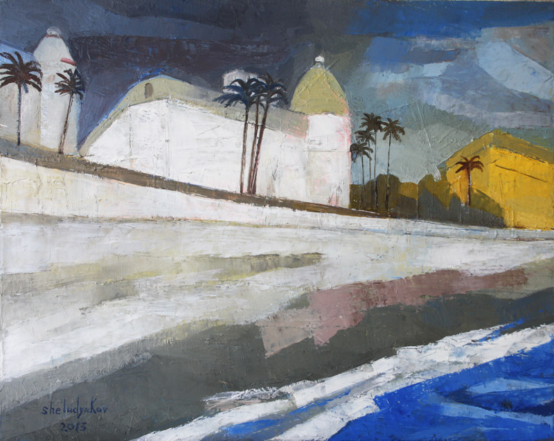 Stretched on wooden frame. Ready to hang. World-wide shipping after prepayment.
