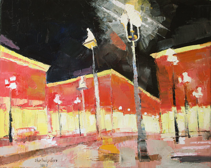 Stretched on wooden frame. Ready to hang. World-wide shipping after prepayment.