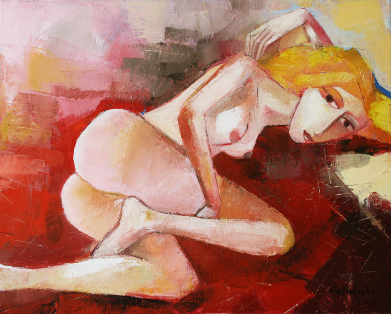 Stretched on wooden frame. Ready to hang. World-wide shipping after prepayment.